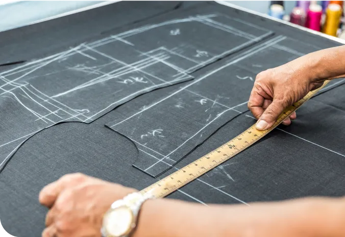 スーツの元となる型紙は、着心地の良さも流行も取り入れています。